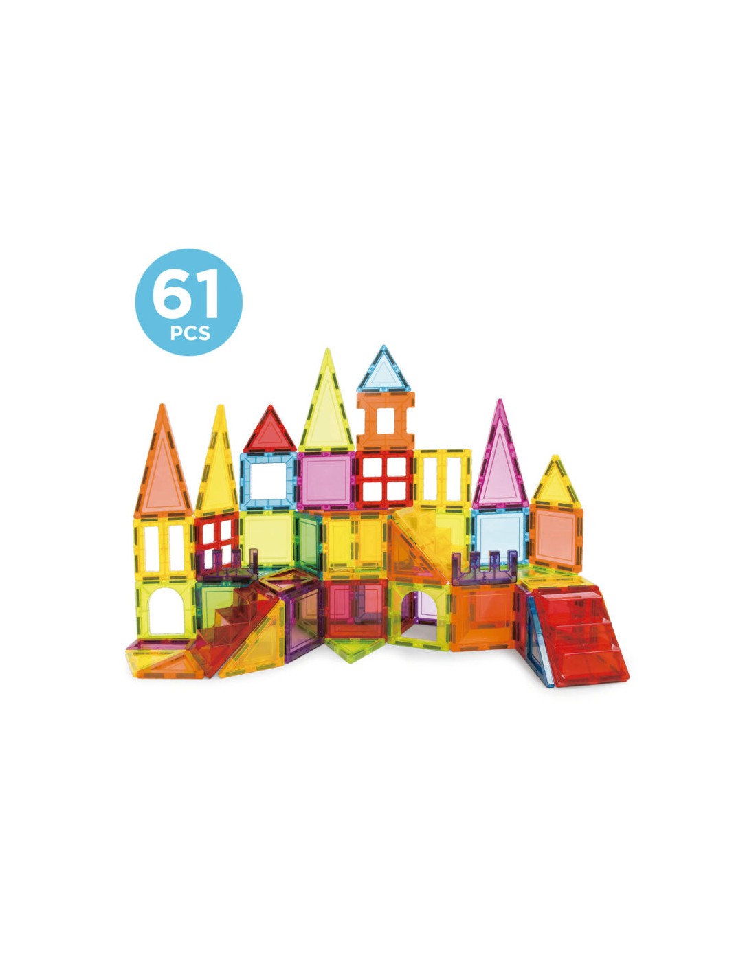 Set de 61 peces de blocs magnètics 3D, perfecte perquè els nens a partir de 3 anys desenvolupin la seva imaginació i habilitats motores.
