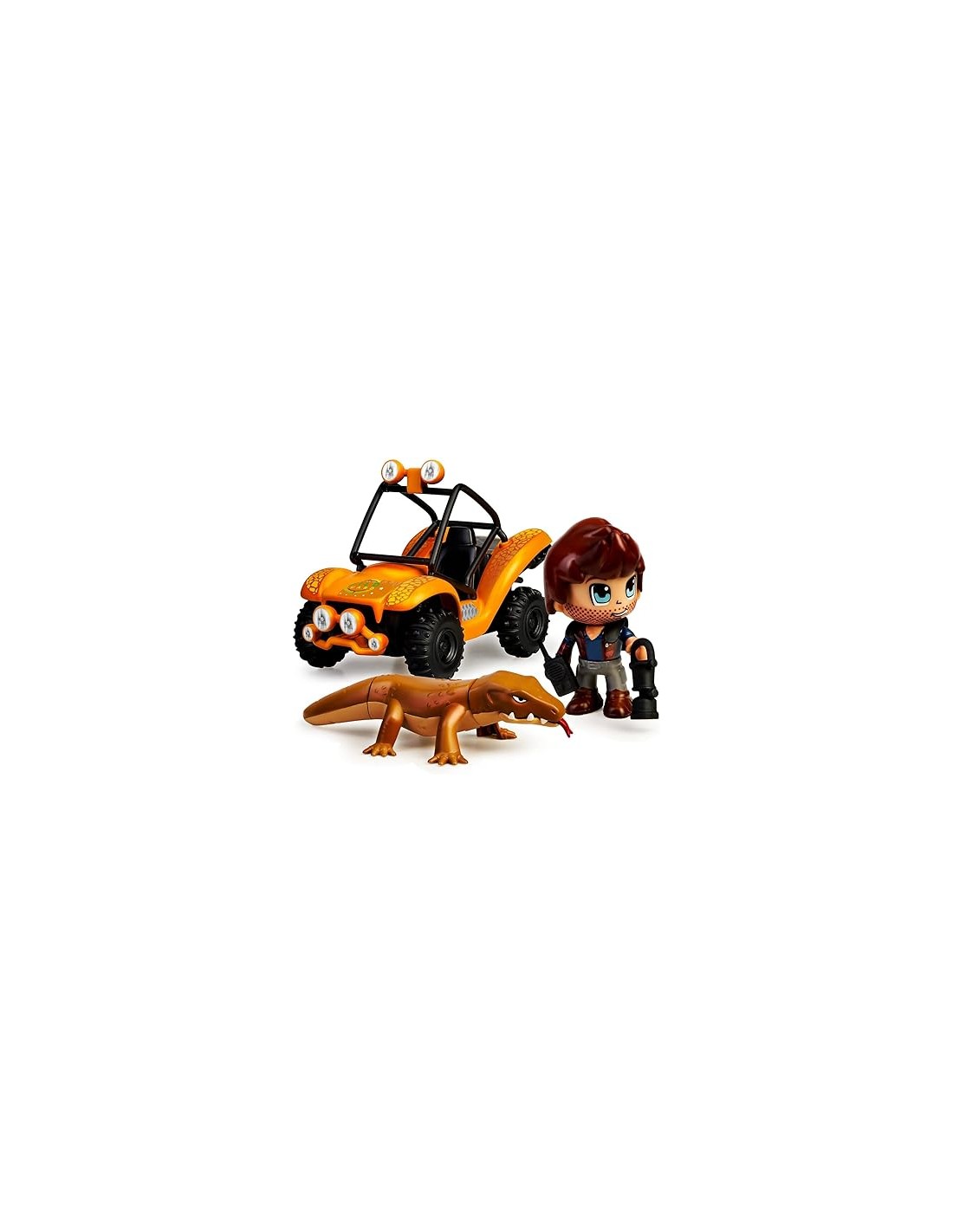 Joc de cotxe Buggy amb una figura de drac de Komodo i una figura d'explorador amb diversos accessoris. A partir de 4 anys.