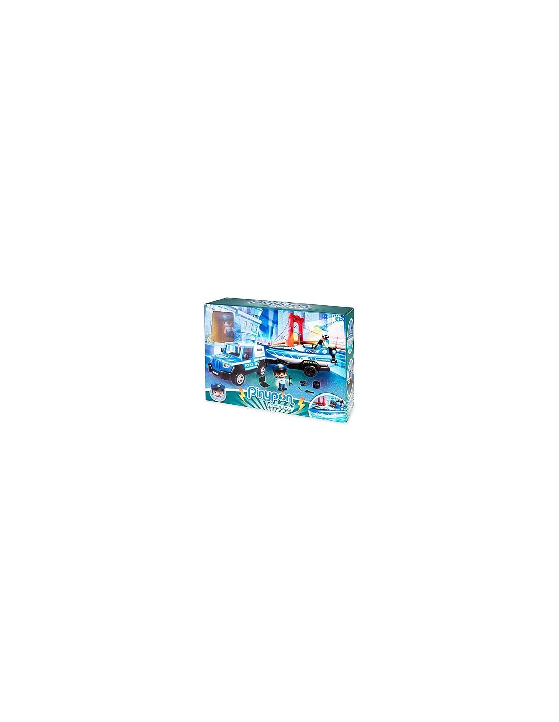 Conjunt de vehicle pickup de policia amb remolc i llanxa. Amb una figura de policia i accessoris.