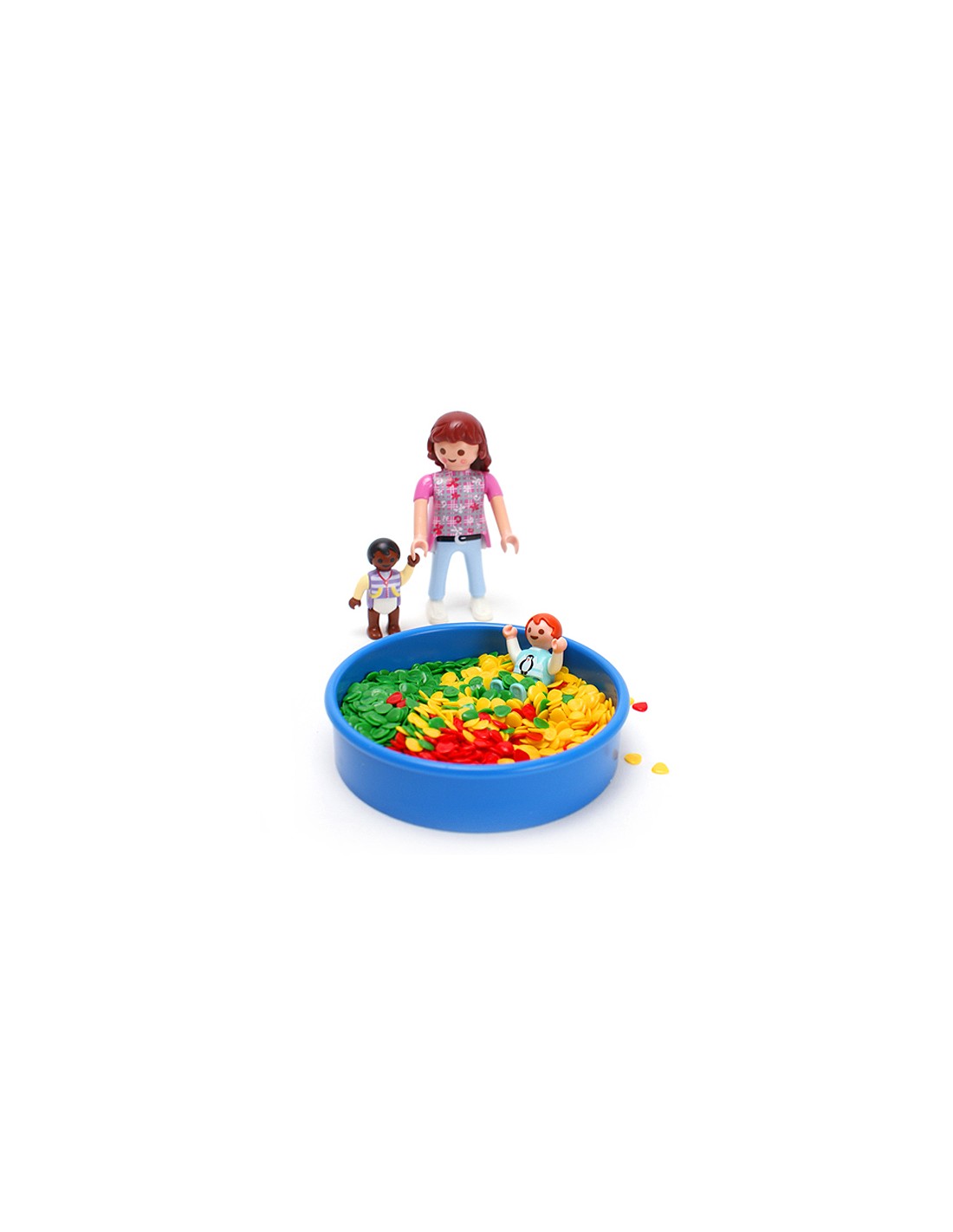 Piscina rodona amb boles planes de tres colors diferents. Amb una figura d'adult i dos nadons. A partir de 4 anys. Playmobil 2013.
