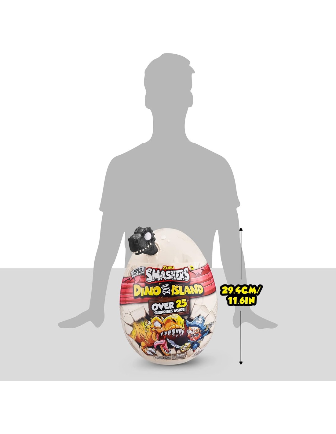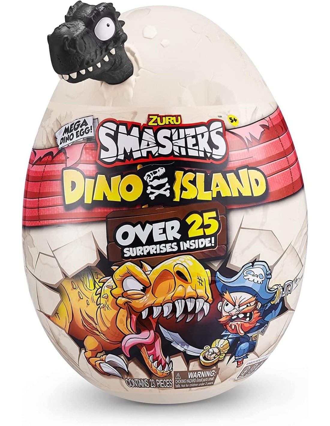Destrossa l'ou i revela 25 sorpreses amagades a l'interior. Explora entre escuma suau com a cotó de sucre, sorra cruixent i slime súper elàstic mentre busques les peces del teu dinosaure. Al recorregut descobriràs una figura de pirata i 4 mini ous èpics amb figures exclusives.