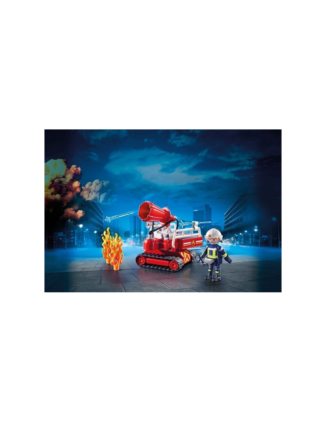 Robot del cos de bombers amb 1 figura de bomber equipat. El robot llança projectils d'aigua per extingir l'incendi. A partir de 4 anys. Playmobil, 2018.
