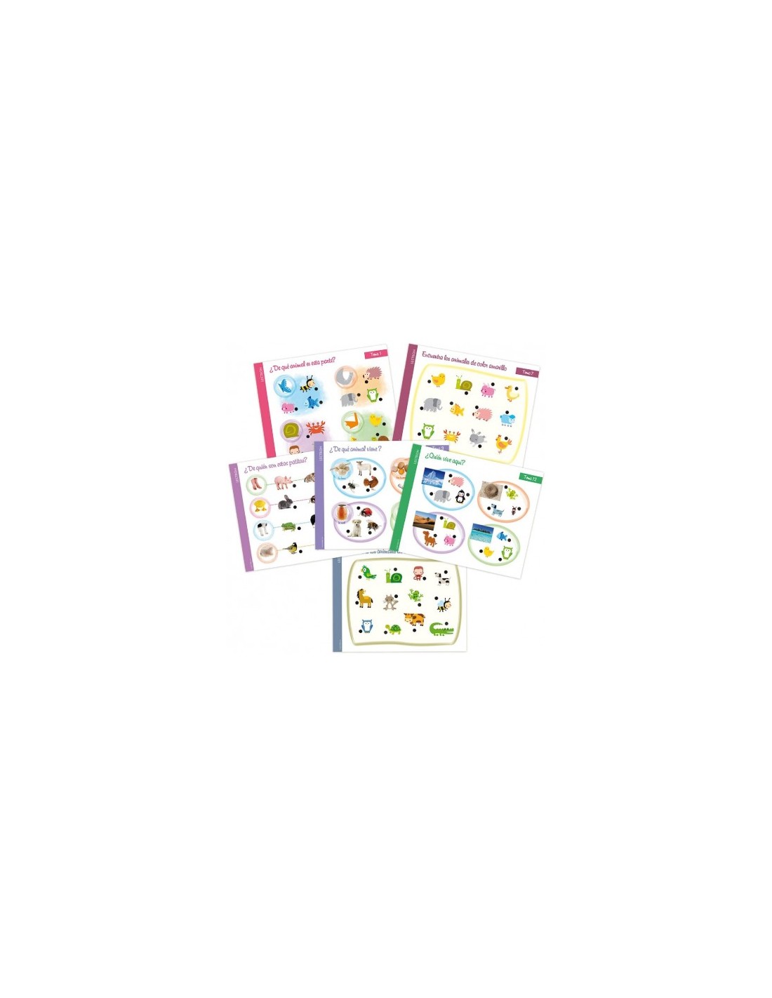 Amb preguntes molt intuïtives adequades a l'edat, estimula laprenentatge de colors, mides, mames i nadons, meitats, siluetes, associació dimatges, etc.