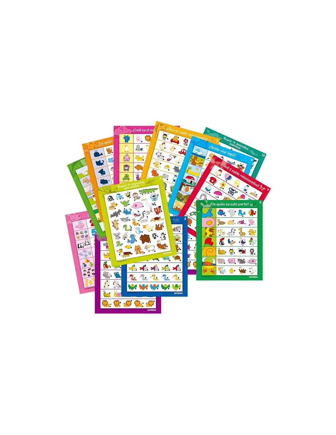 Joc educatiu amb 12 làmines de diferents temes il·lustrats amb divertits dibuixos.