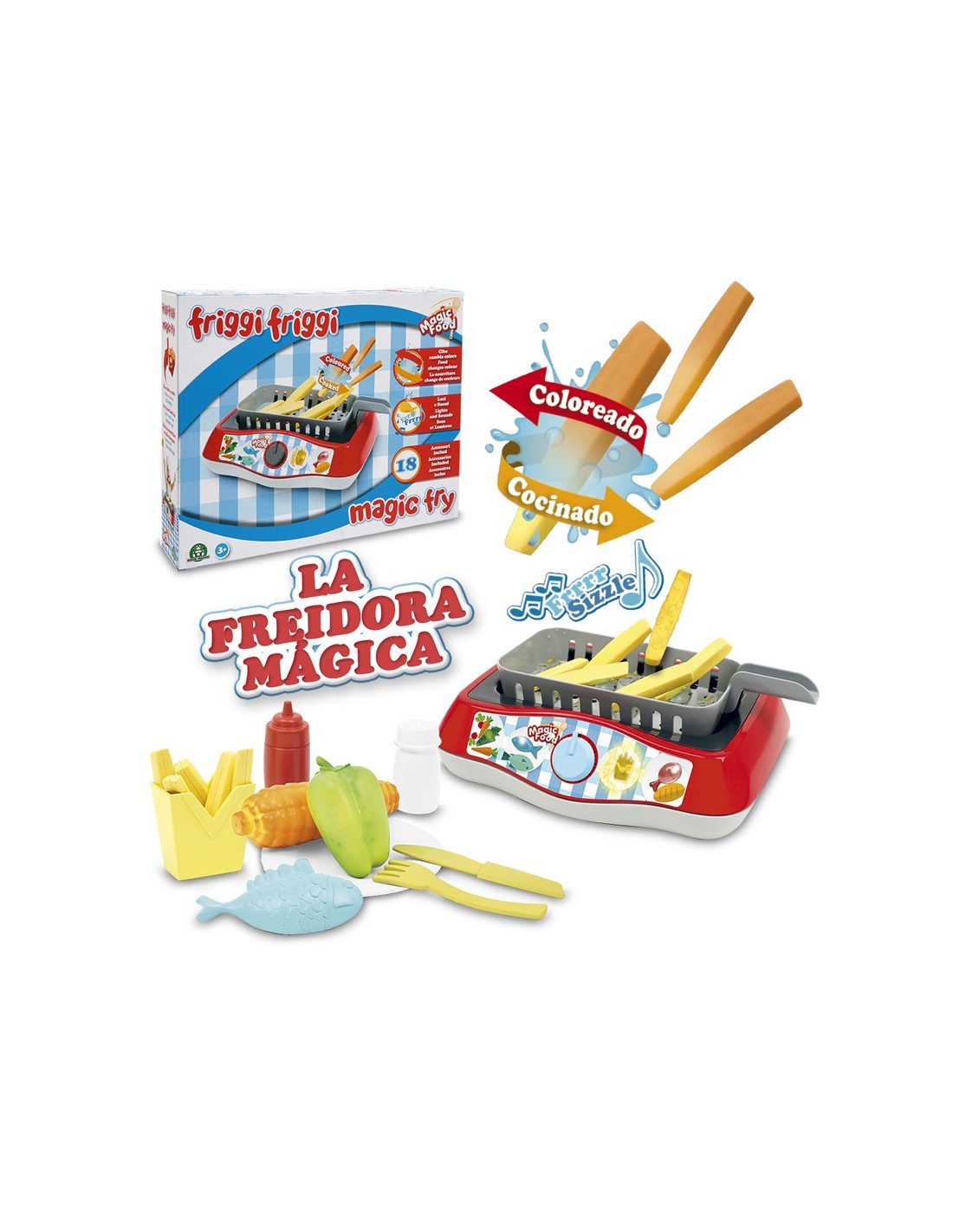 FRIGGI FRIGGI LA FREGIDORA MÀGICA. GIOCHI PREZIOSI. Fregidora de joguina amb llums i sons. Els aliments canvien de color. Amb 18 accessoris. A partir de 3 anys.