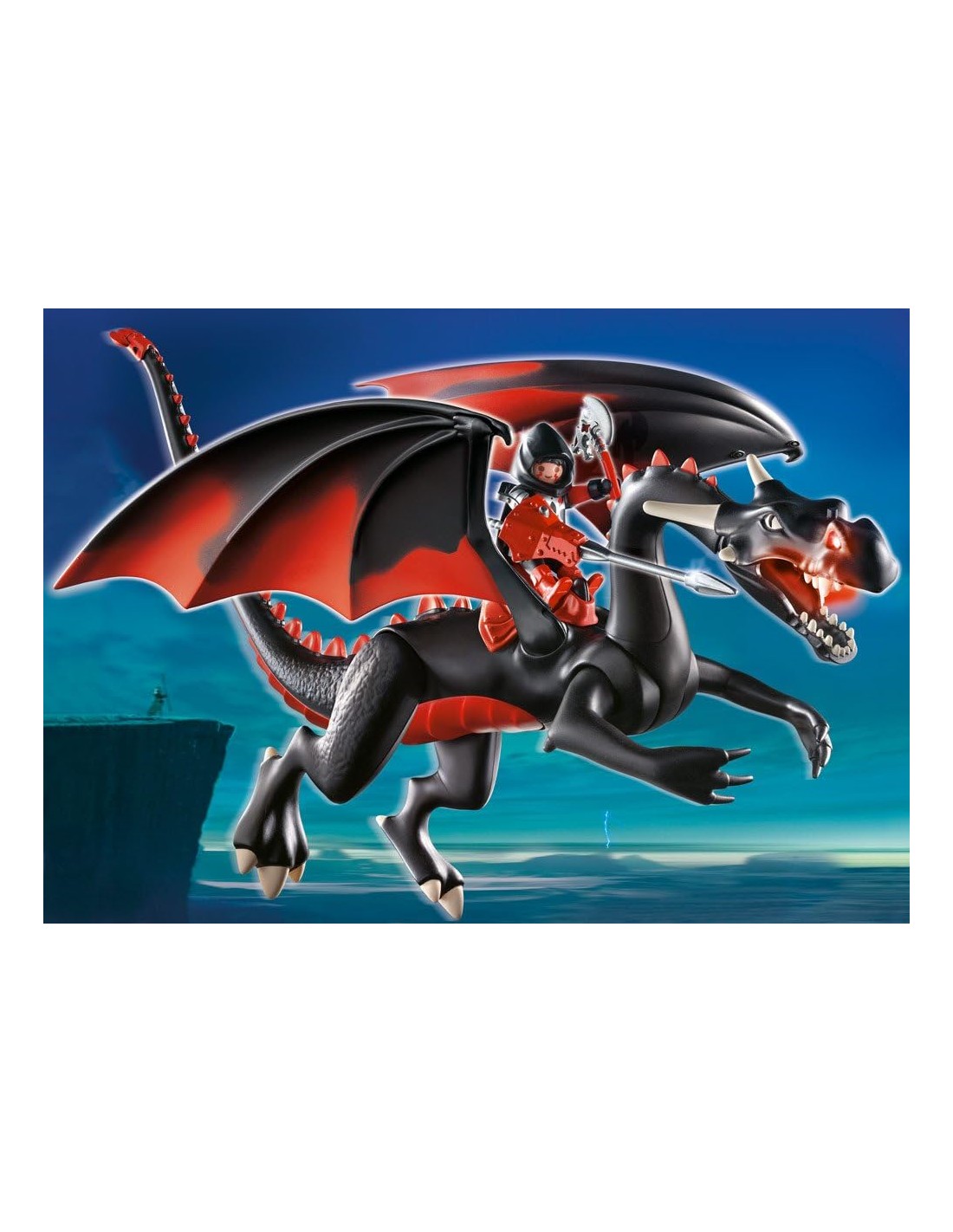 Drac alat articulat amb cadira de muntar pel seu genet. Amb 1 figura de genet. amb llums led. A partir de 5 anys. Playmobil, 2009.