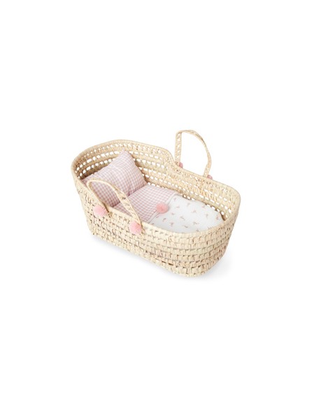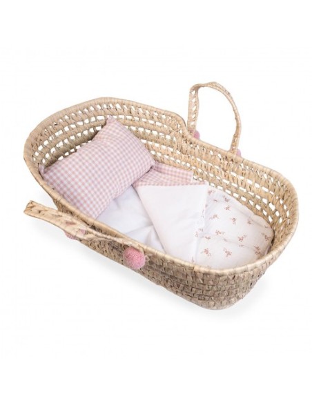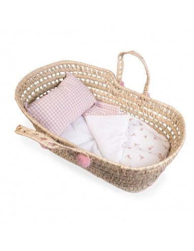Preciós cabàs de vimet totalment equipat per al nadó de joguina.
