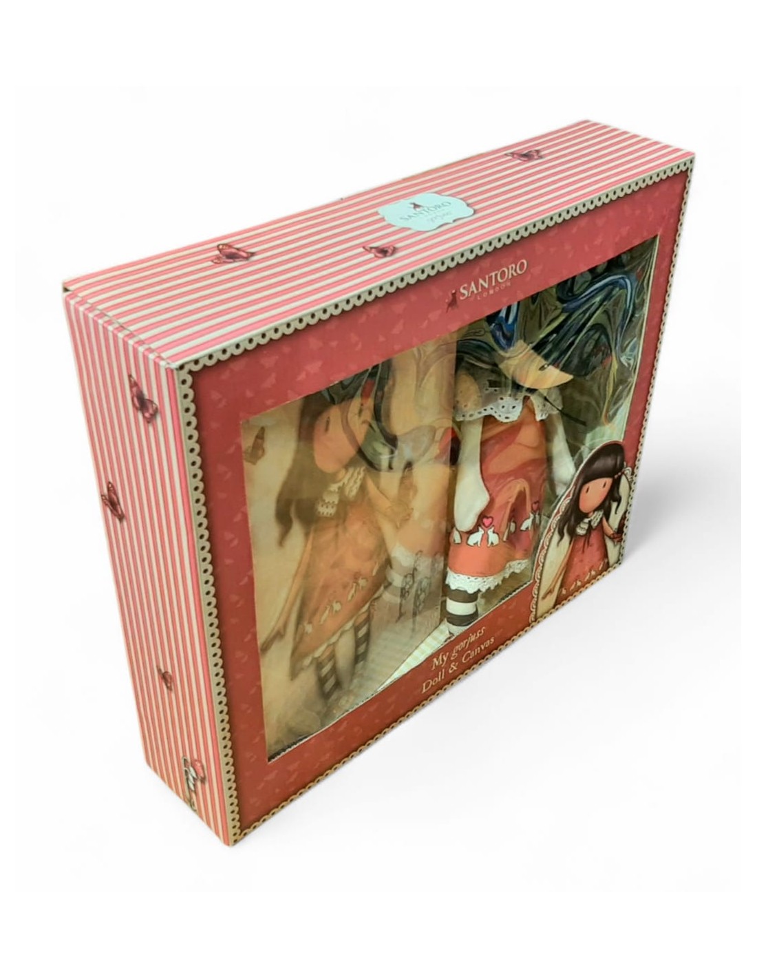 Conjunt de bonica nina de Gorjuss de drap de 30 cm. d'alt i llenç amb la mateixa nina pintada. A partir de 3 anys.