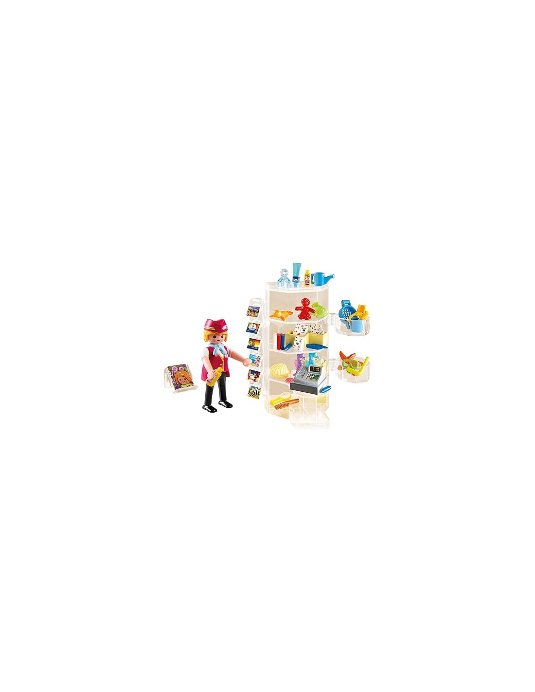 Conjunt amb una figura de venedora, registradora amb monedes, prestatgeria i molts petits accessoris per vendre. Podeu situar-vos al vestíbul de l'Hotel. A partir de 4 anys.