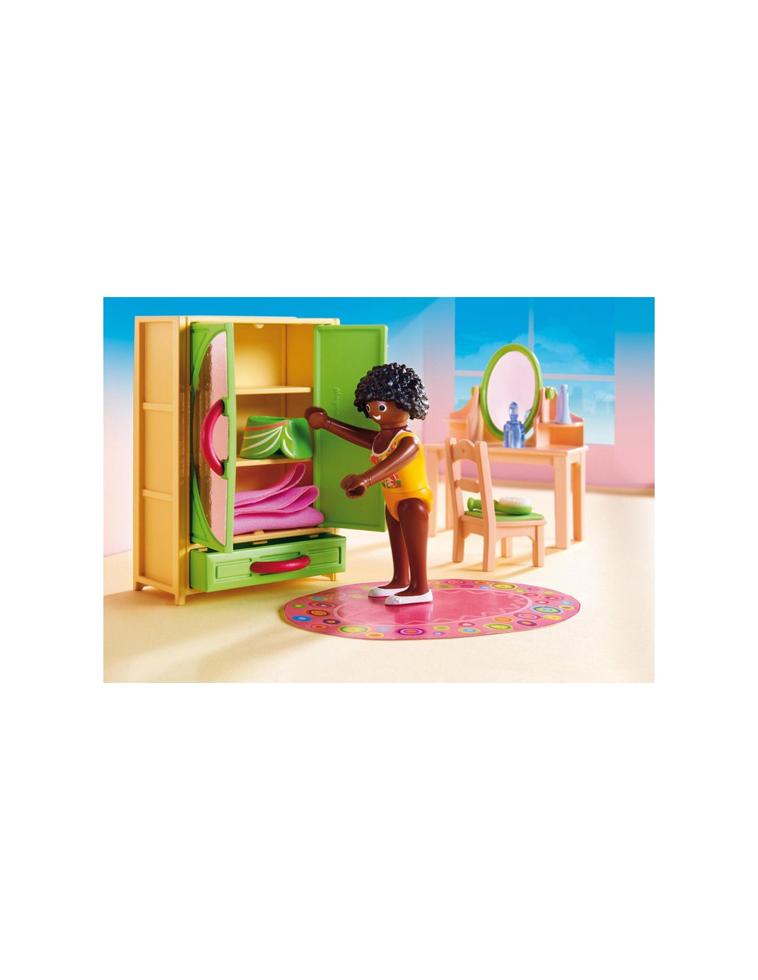 Conjunt de mobles per a habitació principal, amb llit doble amb tauletes de nit, armari, tocador, cadira i accessoris. Inclou una figura amb faldilla desmuntable. A partir de 4 anys. playmobil, 2014.