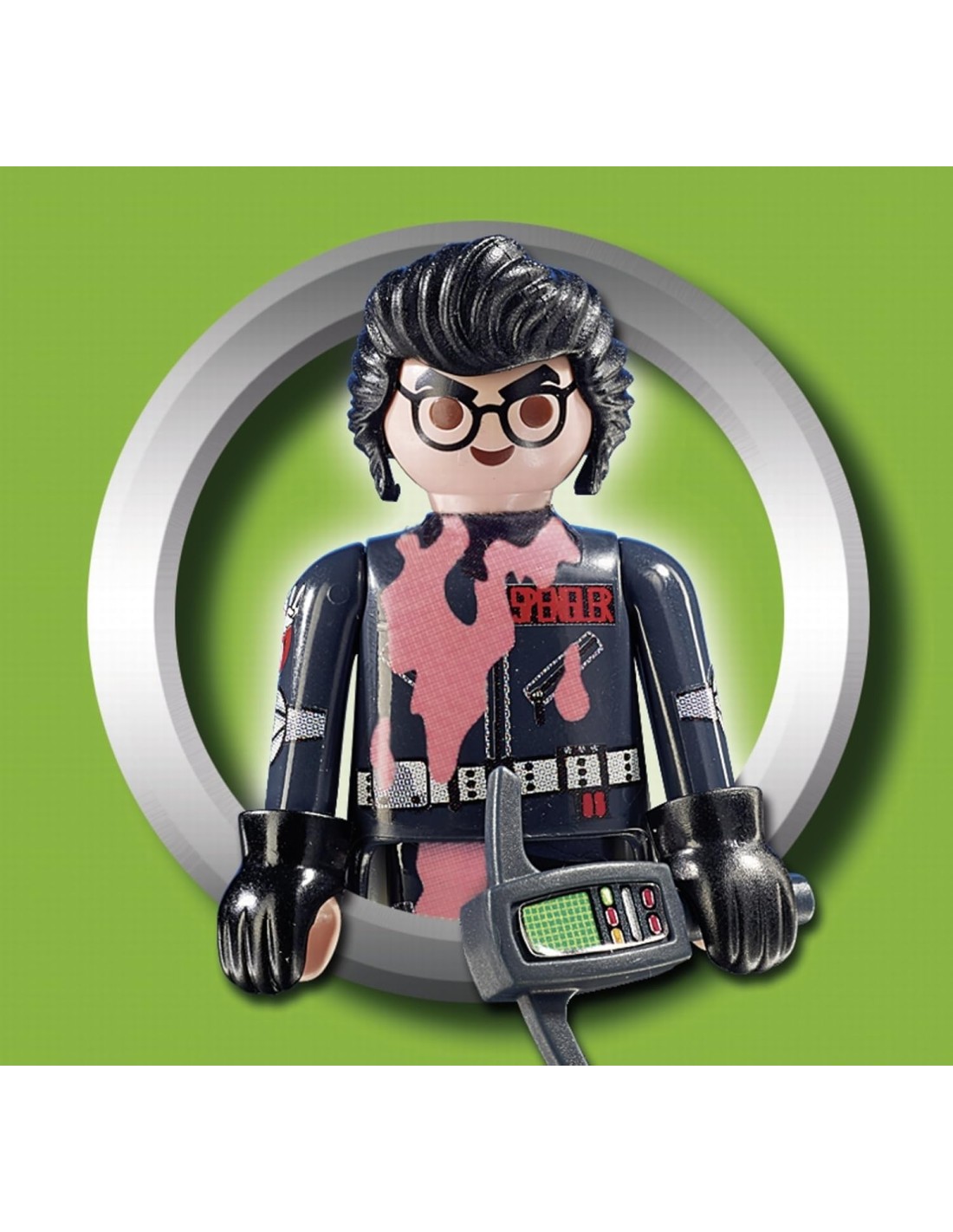 Set de 20 peces. La figura del personatge de la pel·lícula Cazafantasmas amb l'equip de caçar fantasmes. Amb projecció hologràfica. A partir de 6 anys. Playmobil, 2018.