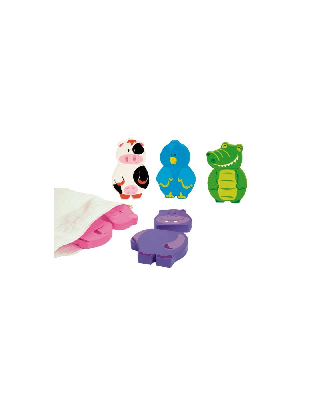Divertides i boniques figures d'animals amb un disseny clar, alegre i arrodonit pels més petits. Les figures estan formades per dues peces, cos i cap. Diverteix-te ajuntant els caps amb els cossos de forma variada! formaràs animals molt divertits!