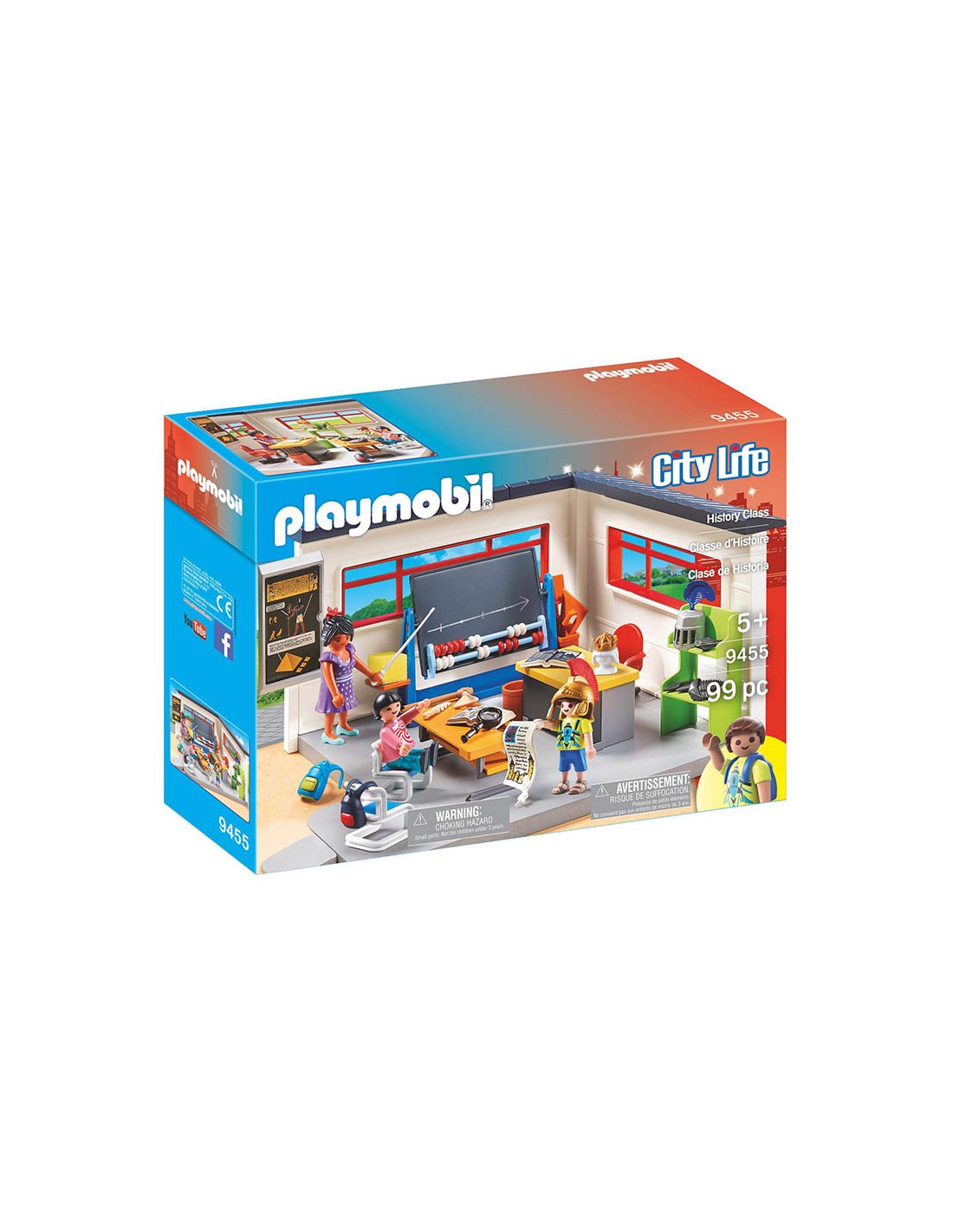 Conjunto completo de una aula con pupitres, pizarra giratória, y muchos accesorios. Con una maestra y dos alumnos. A partir de 5 años.