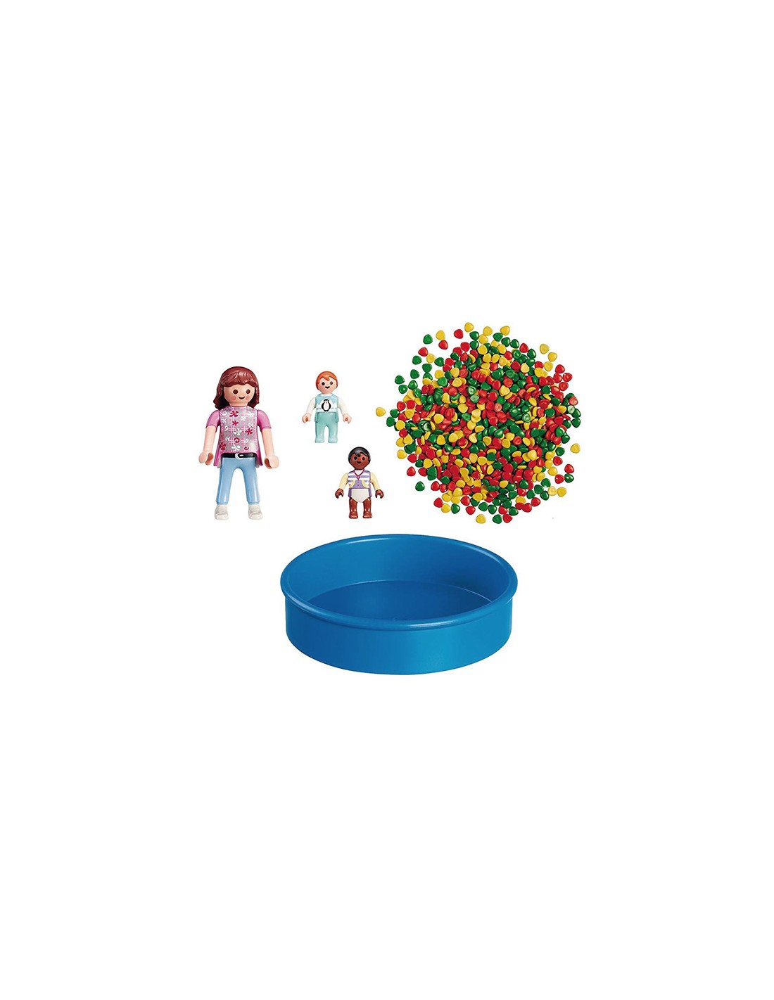 Piscina redonda con bolas planas de tres colores diferentes. Con una figura de adulto y dos bebés. A partir de 4 años. Playmobil 2013.