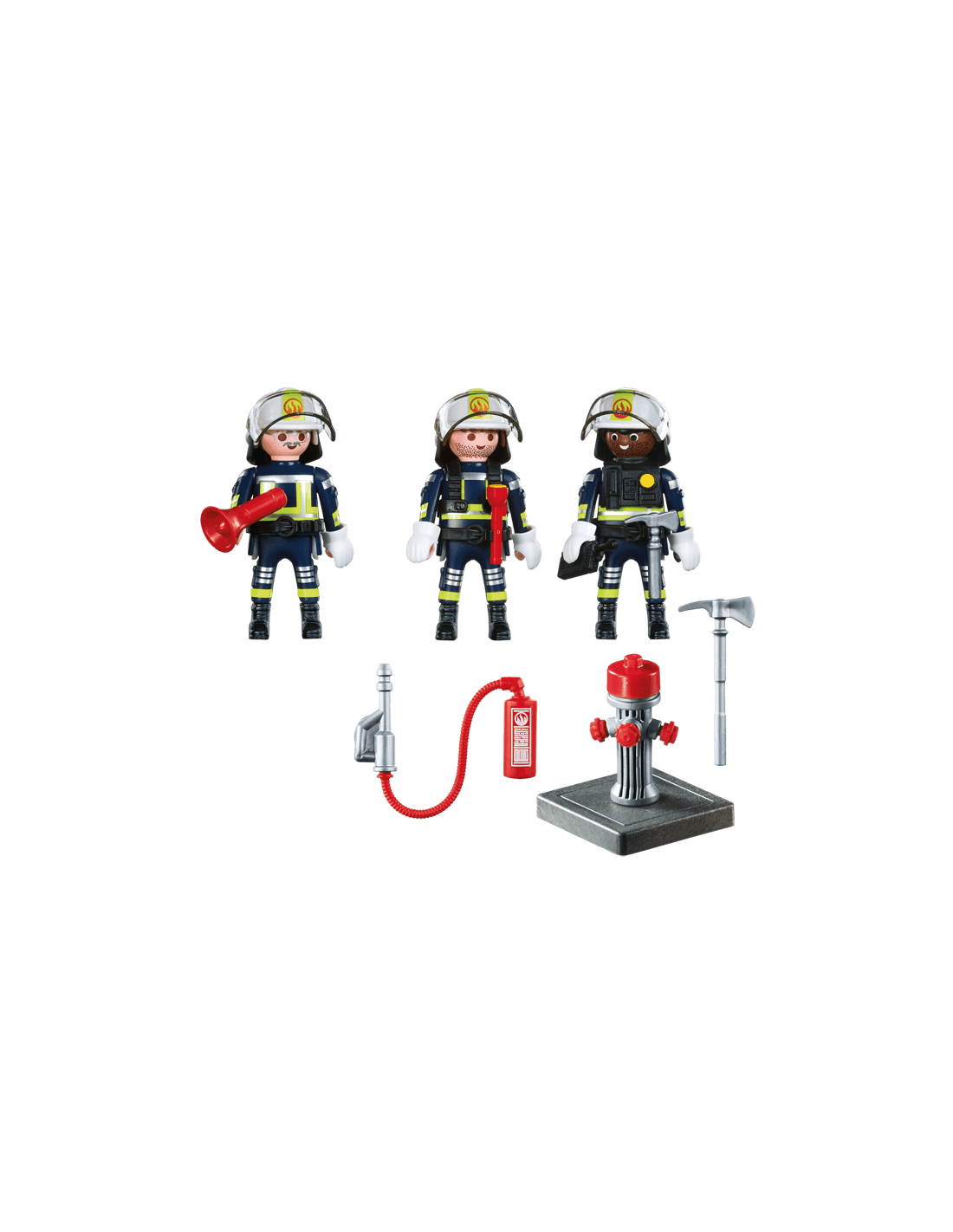 Conjunto de 21 piezas con 3 figuras de bomberos, boca de incendios y accesorios. A partir de 4 años. Playmobil, 2013.