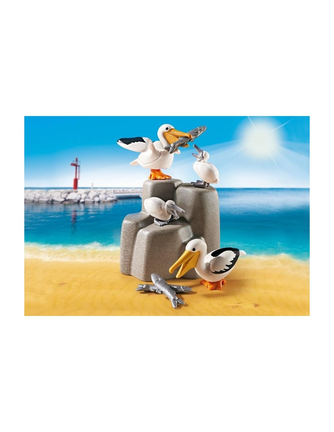Set con dos pelicanos adultos y dos crias con pezes y roca. A partir de 4 años. En sobre. Playmobil, 2016.