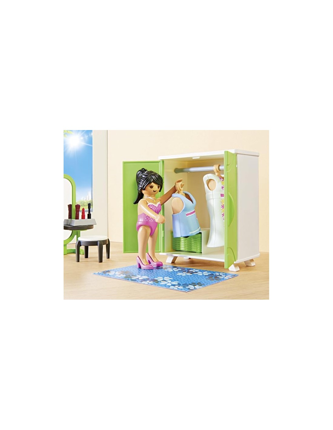 Conjunto de muebles de habitación de dormitorio doble. Con luz, una figura de mujer y muchos complementos. A partir de 4 años. Playmobil, 2017.