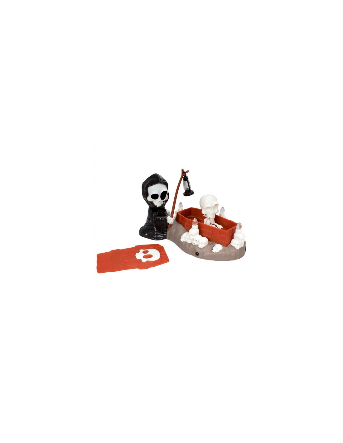 Al final de la partida, el Sr. Esqueleto saldrá de su ataúd lanzando la tapa.