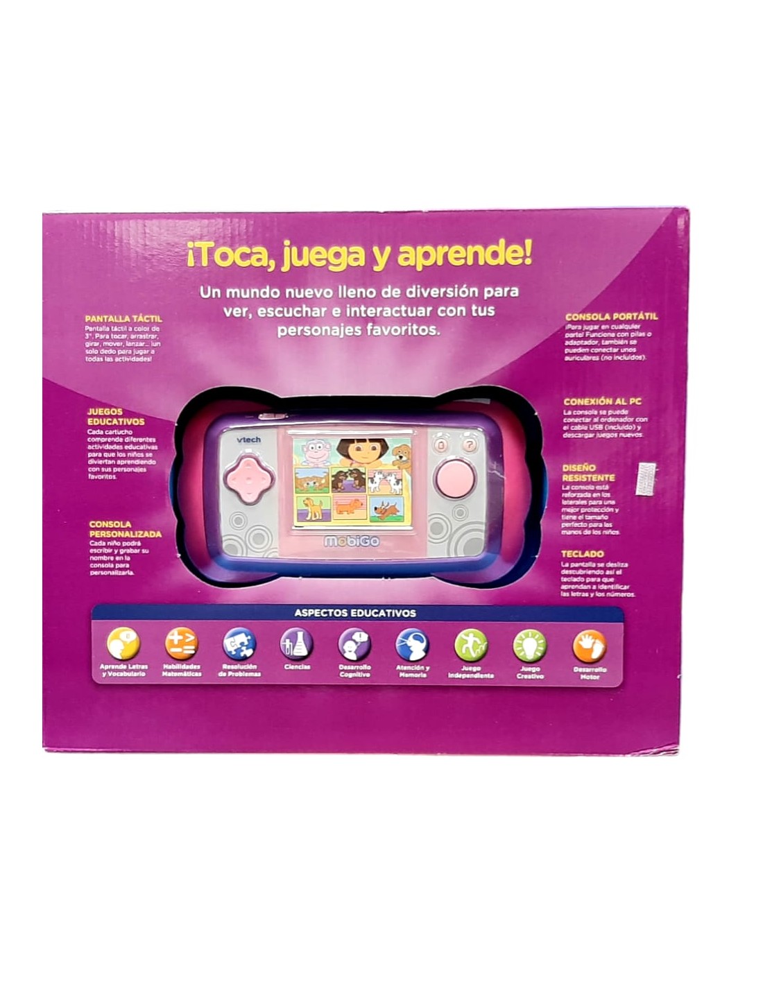 MOBIGO CÓNSOLA TÁCTIL EDUCATIVA ROSA CON CARTUCHO DE DORA LA EXPLORADORA. VTECH.