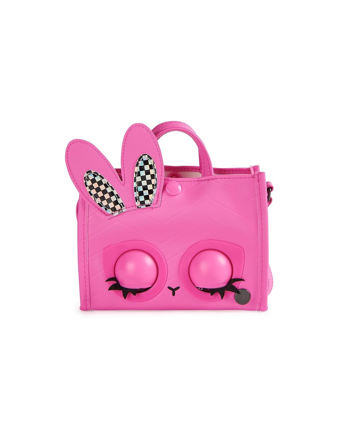 El bolsito es de un precioso color rosa y tiene forma cara de conejita con preciosos y grandes ojos ¡que abre y cierra!