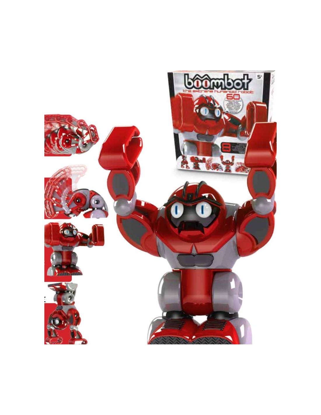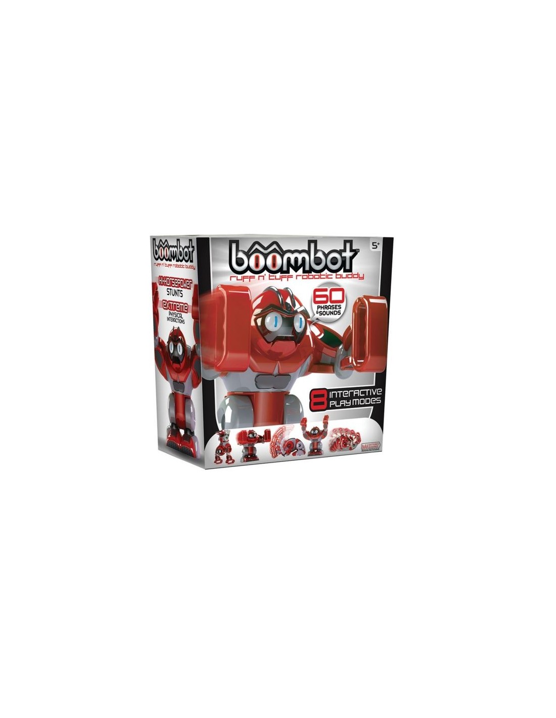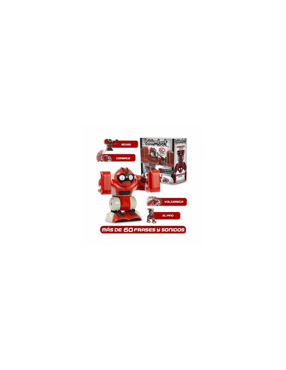 Boombot es un robot interactivo, con frases y sonidos, 8 modalidades de juego interactivo, puede hacer pirueta, boxeo, volteretas, incluso si le tocas el hombro, BOOMBOOT se enfadará y empezará a dar puñetazos.
