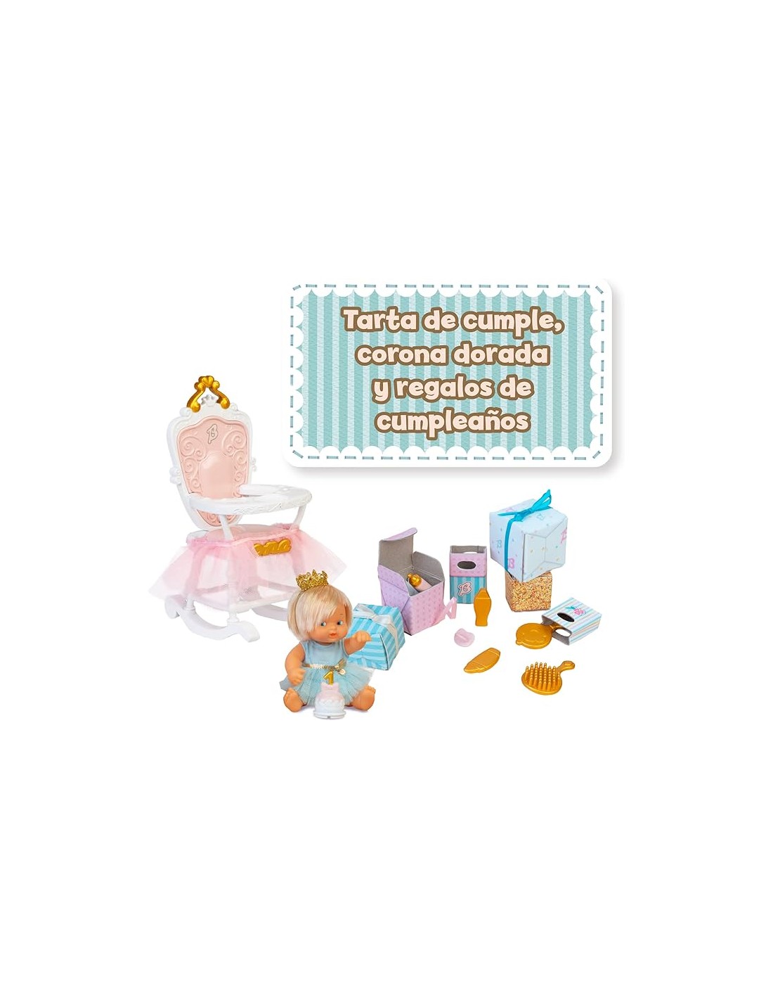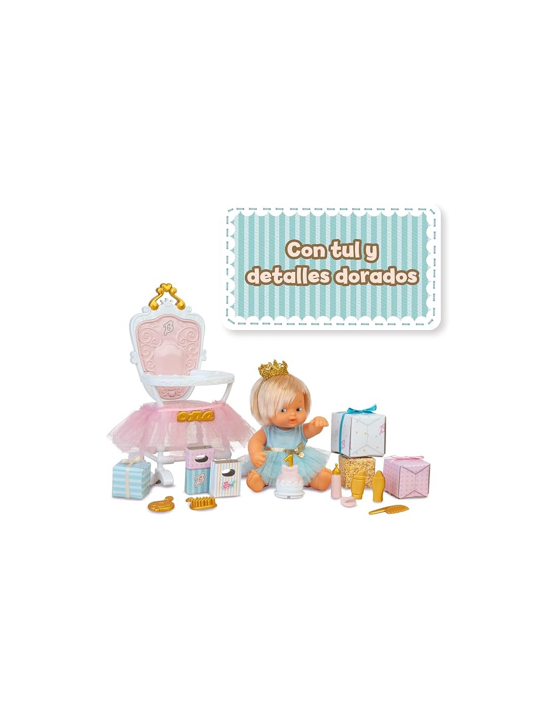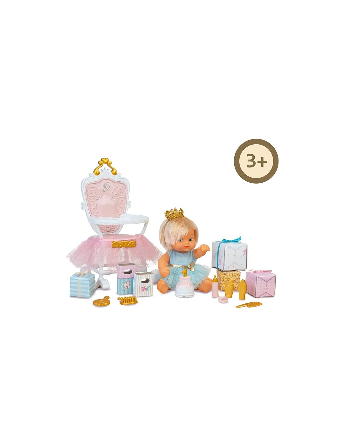 BARRIGUITAS MI PRIMER CUMPLEAÑOS CON MUÑECA. FAMOSA. Preciosa trona decorada con muñeca y muchos regalos. A partir de 3 años.