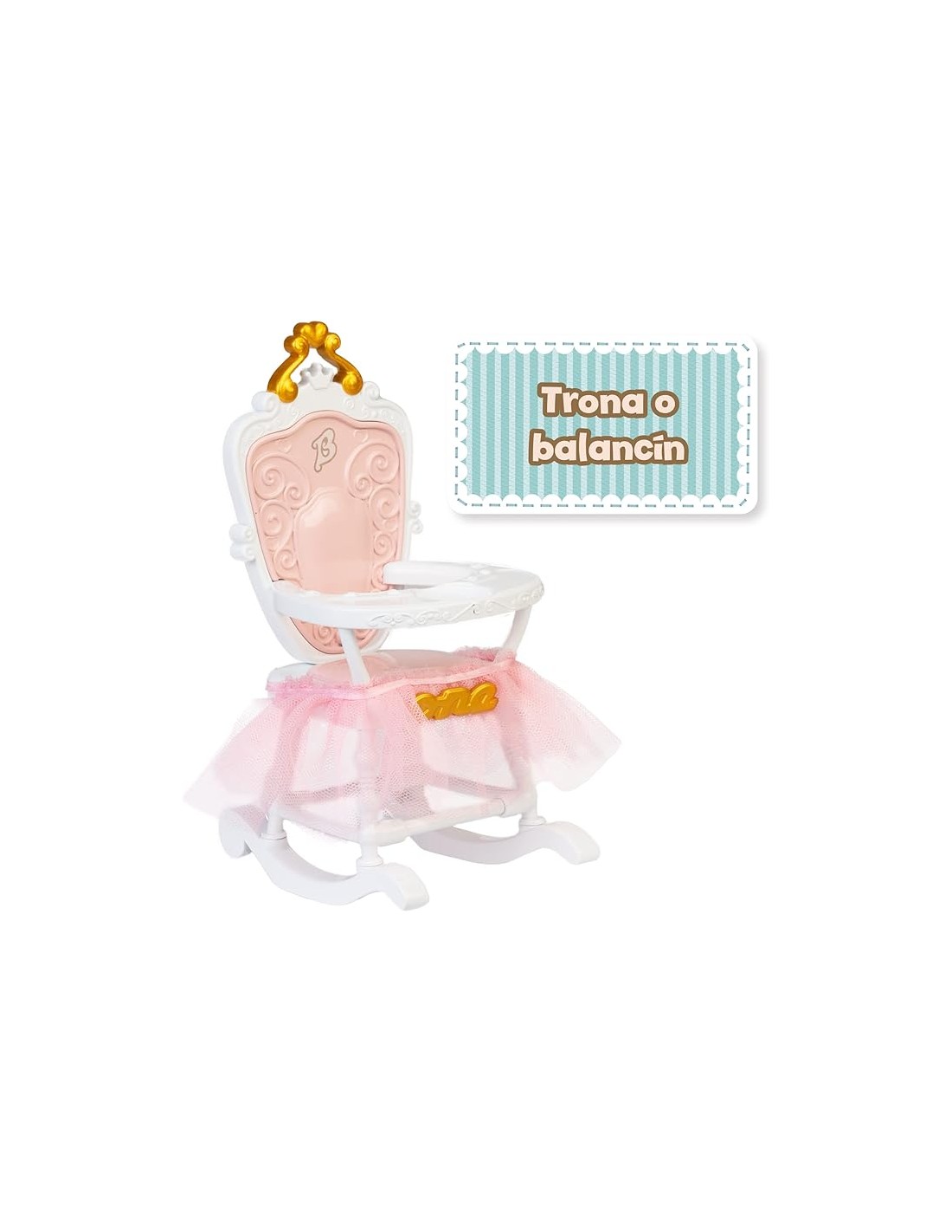 Bonita trona balancín de estilo clásico muy cuidado para tu Barriguitas, decorada especialmente para su cumpleaños.