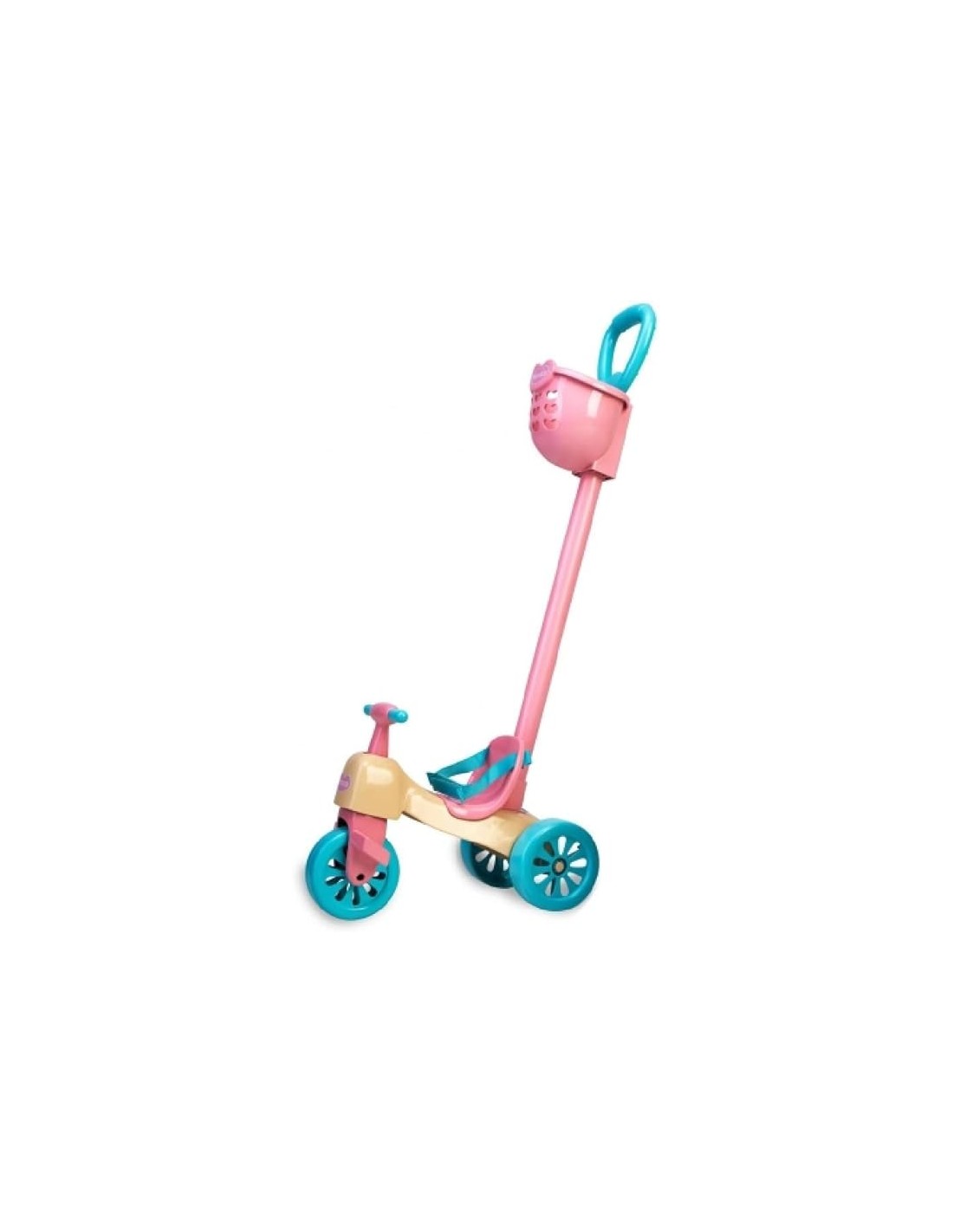 El triciclo está equipado con un cinturón de seguridad para la muñeca, ruedas resistentes y una práctica cesta extraíble, perfecta para llevar todo lo necesario en el paseo.