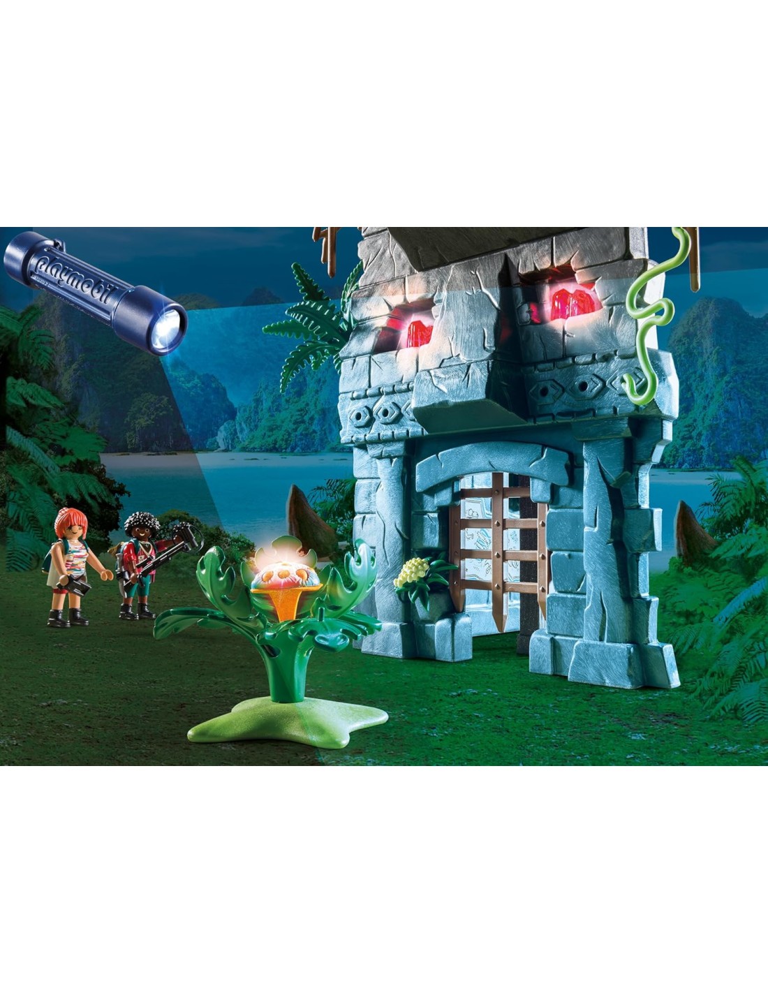 El gran campamento base con luces y todos los detalles. Con una figura de T-Rex. A partir de 4 años. Playmobil, 2018.
