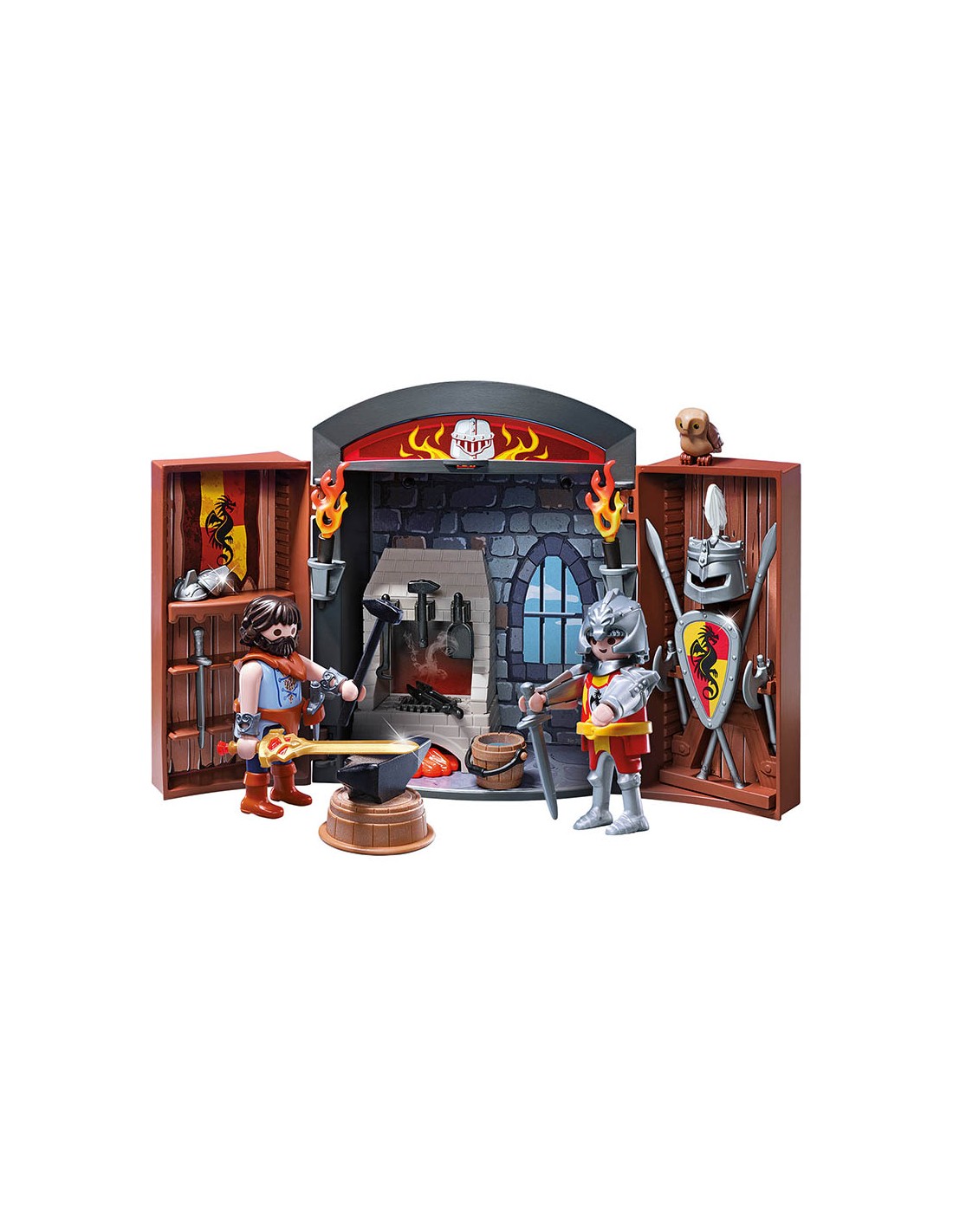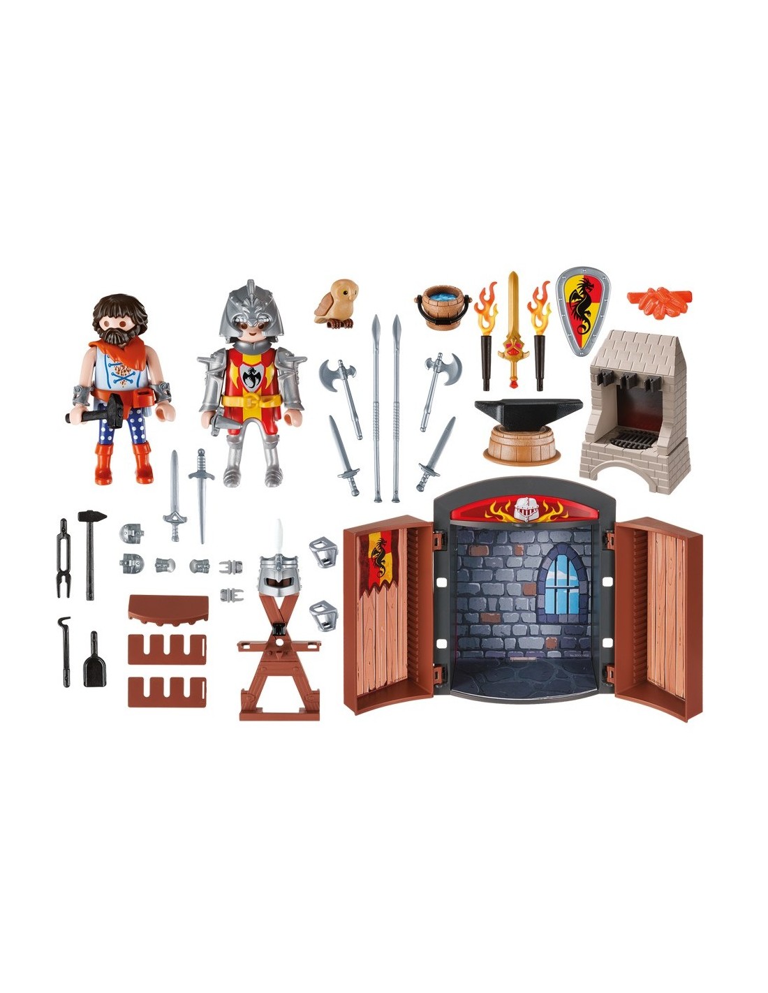 Pequeño maletín transformable en una forja una vez abierto. Con 2 figuras, la forja y muchos complementos. A partir de 4 años.