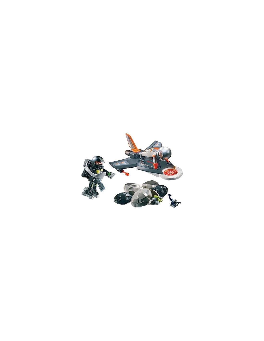Conjunto de dos figuras con avión unjpersonal detector de metales, equipo volador personal y varios complementos. A partir de 7 años.